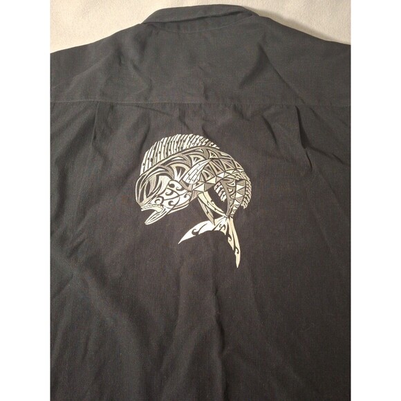 Black Tip Shirt Men's XL Short Sleeve Button Up Large Embroidered Bull Dolphin