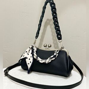 Brand new, only one available. Chic design, great quality. Handmade from premium Italian Togo cowhide, with vintage style kiss-lock closure. Includes 3 style straps, use in multiple ways. See photos for visual options. This purse holds a lot, spacious enough for your phones, wallet, cosmetics, compact umbrella & other items that you may need.