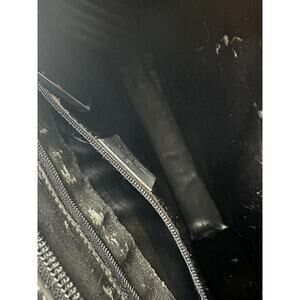 Interior: Features a leather lining and a single pocket. Shows wear and some peeling inside bag. It is dry peeling.