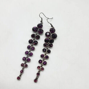• Black Tone Alloy With Graduated Purple Glass Rhinestone Chandelier Earrings 4.25" x 0.75"