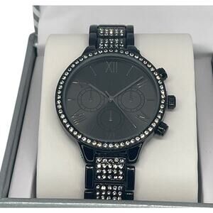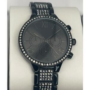 Black Tone Crystal Bracelet Watch Womens Stunning Trendy Fashion Glitz Bezel NWT