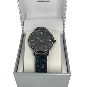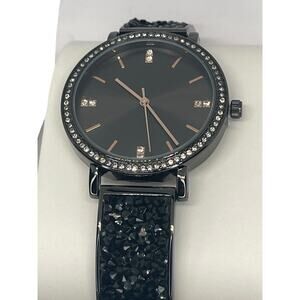 Black Tone Druzy Stone Women's Watch Trendy Fashion Stunning Crystal Bezel NWT