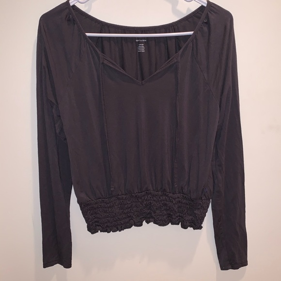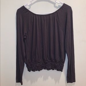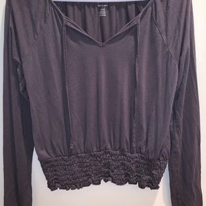 Soft, cute top. V-neck with strings on the top. Scrunch bottom. Only been worn once.