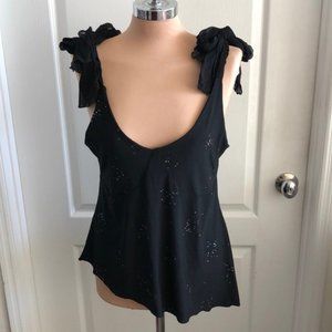 Black Top w Sparkles Adjustable Straps Asymmetrical Side on Bottom Sz. Large