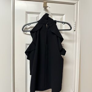 Black TopShop Halter Neck Ruffled Blouse size 4. In great condition with no signs of flaws. Great blouse for business casual, layering, date night, etc. Has a button clasp at the back of the neck.