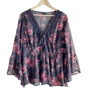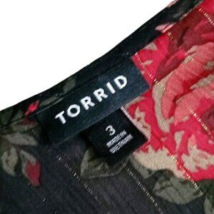 Black Torrid Chiffon Blouse Sheer Babydoll Lurex Crochet Boho Red Floral…
