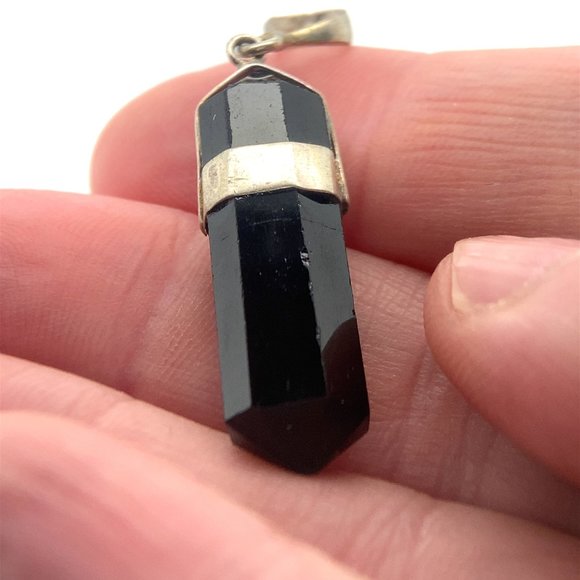 Black Tourmaline 30.25ct Solid 925 Sterling Silver Pendant
