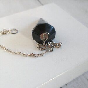 Black Tourmaline Crystal Pendulum Handmade Tumbled Hexagonal Cone Chakra Dowsing