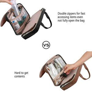 🧿Special Design: Inner main pockets with elastic straps hold bottles upright; double zipper compartment for easy access to the items even not fully open the bag; Transparent sides for providing clear overview of contents
