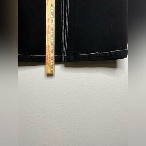 Chic black maxi skirt with subtle white stitching.