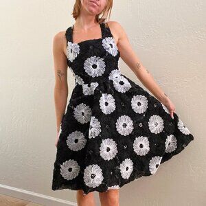 Black Tulle Daisy Flower Embellished Fit + Flare Dress