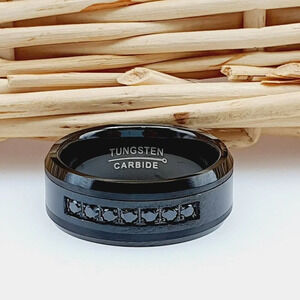 "Black Tungsten Wedding Ring with Black CZ Inlay, GALTUN888