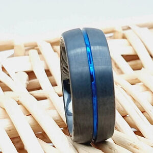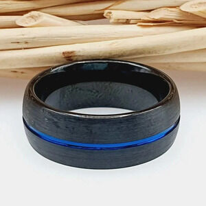 "Black Tungsten Wedding Ring with Blue Groove, GALTUN989