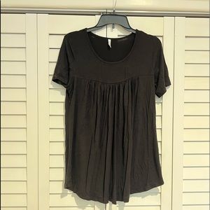 Not a nursing top but I used it as such, very roomy in the runny area hides new mom insecurities easy to lift for breast feeding/ pumping. Attractive cut gives shape at top while not being tight or clingy at the stomach