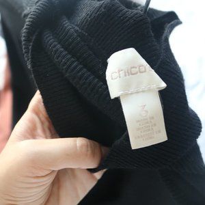 Black Chico's turtleneck sweater. I thrifted this a few years ago and don't get enough use out of it. The Chico's tag is falling off and the tag with the care details has been removed. The sweater itself is in great condition and still has a lot of life left. I love wearing this tucked into high waisted jeans. Make me an offer!