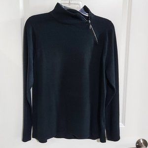 Black Turtleneck Sweater with Rhinestone Zipper