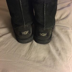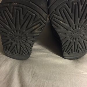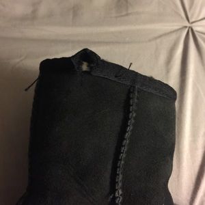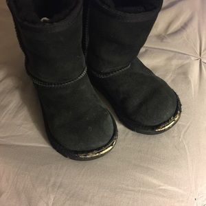 Pre loved black UGG boots for your child .. Front is a worn some and the 4th picture show they need a little sewing repair .. Easy peazy‼ Otherwise very functional and warm for those up coming winter days ☃... Great Price for a Great Brand !!!