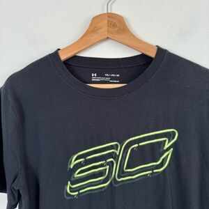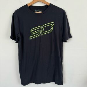 Black Under Armour Heat Gear Graphic Tee with Yellow Design Shirt Boys Youth XL