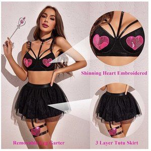 Black Underwire Bra and TUTU Skirt Garter Heart Lingerie Set