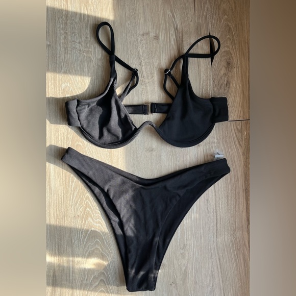 Brand new never worn black ribbed SHEIN bikini. Underwire top with cheeky bottoms size small.