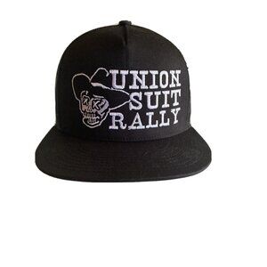 Black Union Suit Hat Cap Skeleton Skull Mesh Back Adjustable