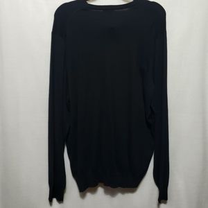 Super soft, classic black v neck sweater. Medium weight with wider knit banding around bottom and sleeve bottoms. Size extra large by Van Heusen.