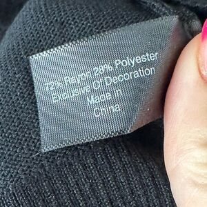 Black V Neck Sweater with Lace Sleeve Appliqué Size 14/16