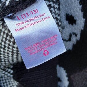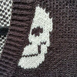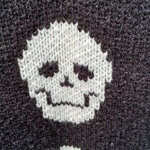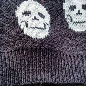 Black V Neck with White Skulls V Neck Wooly Pullover Neck Sz L