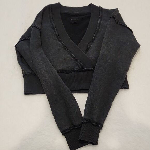 Black V-Neck Cropped Sweater