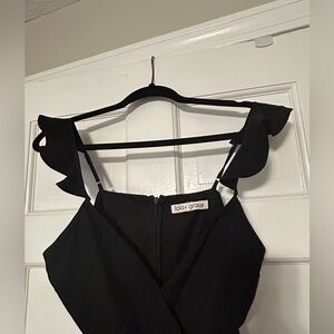 Black V-Neck Mini Dress with Ruffle Straps