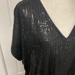 Black V-Neck Sequin Top