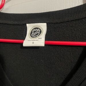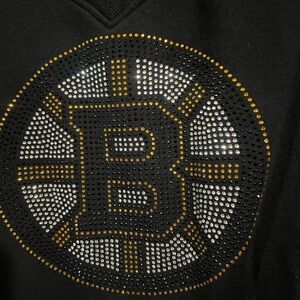 This black V-neck sweater showcases a stunning rhinestone-embellished logo, adding a touch of elegance to your casual look. Crafted from a comfortable knit material, it offers both style and warmth for any occasion.