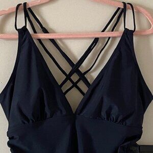 Black V-Neck Tankini Set (with adjustable draw-string sides), size XL.