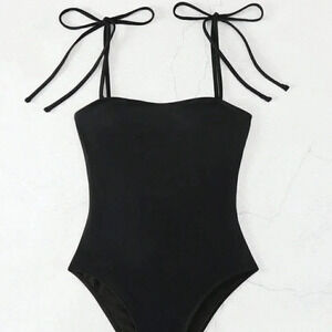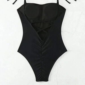 Black Vacation Style Women's Swim Summer Beach Solid Color One-Piece Swimsuit