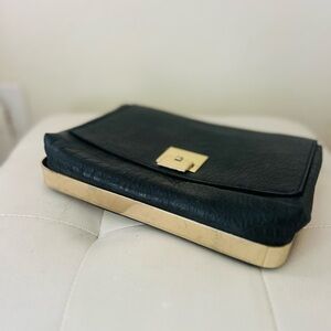Black Vegan Leather Shoulder Bag Gold Chain Strap