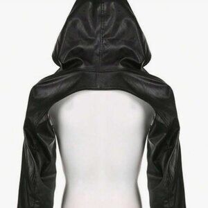 Black Vegan Leather Shrug with Hood Large size 8/10