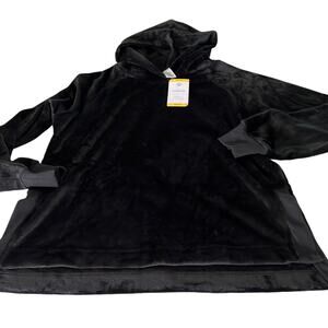 Black Velour Plush Hooded Pullover Top Woman Size Medium NWT
