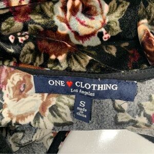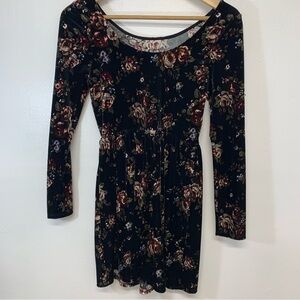 Black Velvel Dark Floral Mini Dress Small Long Sleeve Skater Stretch Holiday
