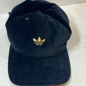 Black Velvet Adidas Cotton Gold Trefoil Embroidered Logo Adjustable Cap Hat