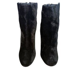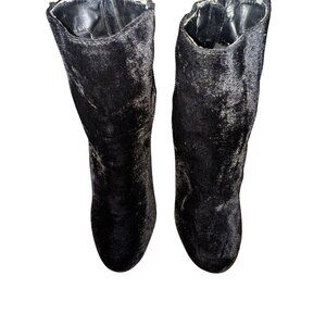 Black Velvet Ankle Boots Rhinestone Snake Design Sexy Glam Size 10 Punk Rock Y2K