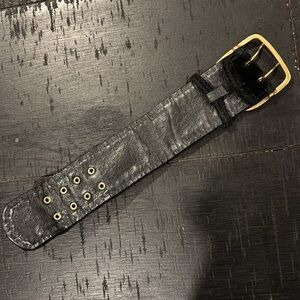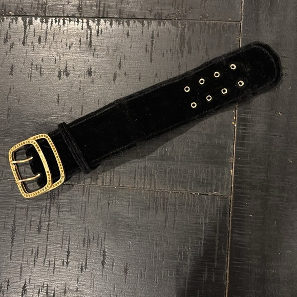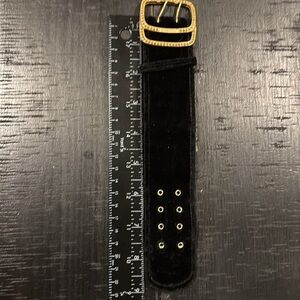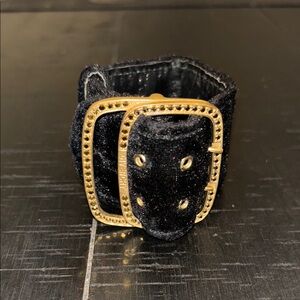 Elegant black velvet belt bracelet featuring a stylish gold buckle. Perfect for adding a touch of sophistication to any outfit.