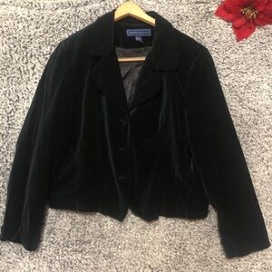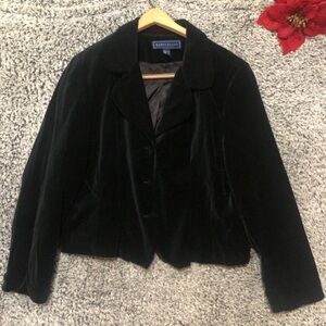 Black Velvet Blazer Size 16 Single Breasted 3 Button Vtg Karen Scott