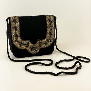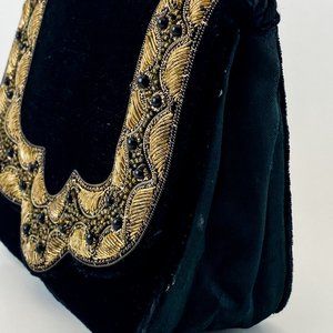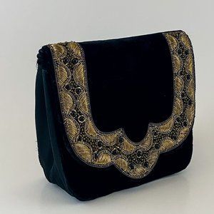 Black Velvet Boho Clutch Gold Embroidered Handbag