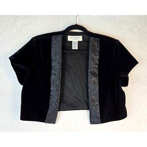 Black Velvet Bolero Evening Jacket Sz 8 JR Nites by Caliendo Open Topper 90s VTG
