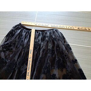 Black Velvet Burnout Floral Sheer Maxi Skirt Elastic Waist Women's Large Gothic