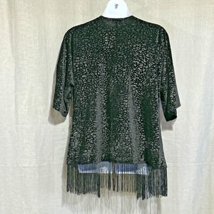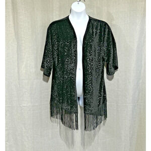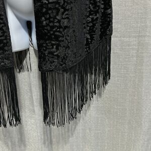 Black Velvet Burnout Jacket Womens 1X Fringe Open Cardigan Whimsigoth Kimono