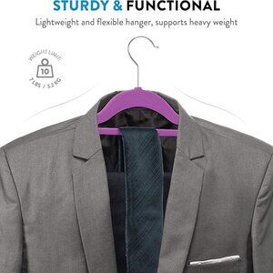 QUALITY: Our velvet hangers are made of non-slip velvet that will grip your clothes in place. These hangers are also lightweight but strong, able to hold up to 10 pounds!