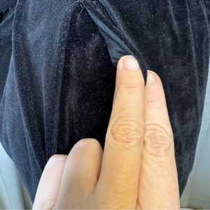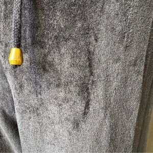 Experience comfort and style with these black velvet track pants. Perfect for casual outings or lounging at home. Elastic waistband with drawstring closure and pockets.