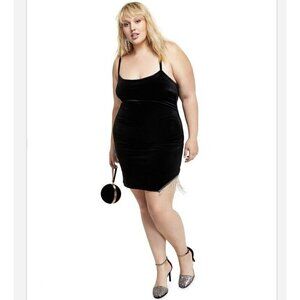 City Studios Trendy Plus Size 16W Velvet Rhinestone-Fringe cocktail party Dress black. DB