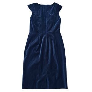 Solid black stretch cotton velvet velour fabric. Tailored look w/ flattering princess seams on bodice, cap sleeves, rear zip, fully lined. Issues noted in photos. Needs some extra love from a lint roller. Good preowned condition, overall. Size 2 by J. CREW 365. Style: K2874 Velvet Cap Sleeve Dress